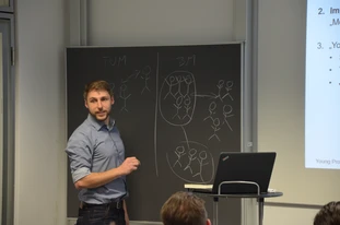 On April 5th, 2017, the first “Young Professionals” event of the ECS Student Chapter Munich was hosted by the Chair of Theoretical Chemistry at the Technical University of Munich (TUM). Several TUM Alumni accepted the invitation to attend this event as guest speakers and shared some of their experiences and recent impressions as young professionals in industry. With two speakers from BMW AG, both from the battery and the fuel cell department, and one speaker from the Deutsche Accumotive GmbH & Co. KG, the focus of this event was on energy storage and conversion in the automotive field. In addition to the guest speakers, more than 40 participants from six different research groups at TUM enjoyed an introduction to the ECS Student Chapter Munich by our president Sophie Solchenbach and a review of the Student Chapter’s previous activities, including a brief summary of the 2nd ECS SCM Symposium on “Modelling of Electrochemical Systems” by Rui Fang. For some of the students, however, the highlight of the event was clearly the chance to network both with alumni and researchers from other Chairs at TUM. The discussions continued throughout the whole evening in an informal get-together with cool drinks and snacks. “I really appreciate the chance to meet other researchers and to keep in touch with alumni from our Chair in such an informal occasion.” says Armin Siebel, board member of the ECS Student Chapter Munich and adds further “I am looking forward to our next Young Professionals event.”