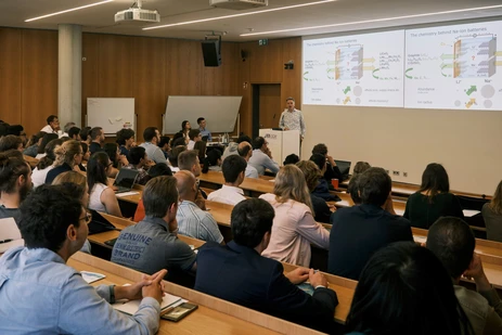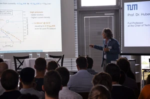 The ECS Student Chapter Munich hosted a symposium on the topic “From Academia to Industry - Electrochemical Challenges at Different Scales“ on the 21st of September with more than 100 participants, including master’s students, PhD students, Postdocs, as well as Professors. The overarching question of this event was how academia and industry can collaborate more efficiently to solve challenges in electrochemistry, especially with respect to fuel cells and batteries. The event should represent electrochemical challenges faced at the different scales ranging from academic research, over the start-up sector, up to a large-scale production level. What is the current interdependence between academia and industry within the innovation pipeline of green technology and how can it be improved? The invited speakers from universities, a start-up, established companies presented their current work and research. Battery related talks were given by Prof. Dr. Philipp Adelhelm (Helmholtz Zentrum Berlin, TU Berlin), Dr. Heino Sommer (Cellforce Group), Dr. Sophie Solchenbach (BMW Group) and Dr. Fabian Linsenmann (Tesla, Inc.). The Fuel Cell and Hydrogen Technology talks were given by Prof. Dr. Christina Roth (Universität Bayreuth), Dr. Matthias Breitwieser (Ionysis GmbH), Dr. Florian Kessler (Siemens Energy) and Dr. Matthias Hanauer (Robert Bosch GmbH). During the lunch break, members of the ECSSCM presented their current research in a poster session.