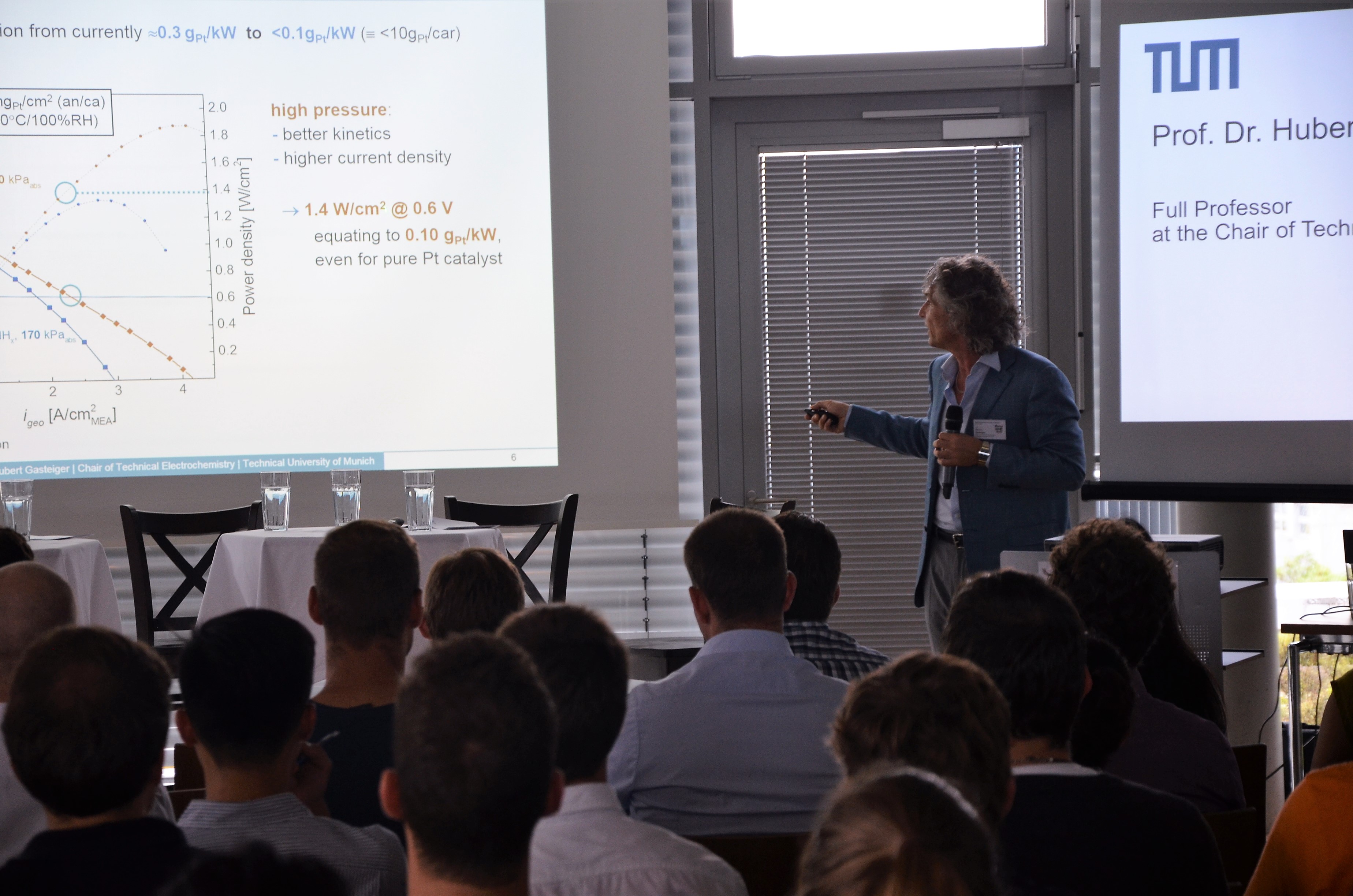 During the following ~90 minutes, a lively and sometimes passionate discussion fired up between the panelists on the different aspects of energy storage technologies and their impact on the automotive industry, moderated by Christoph Simon and Rui Fang. While Peter Lamp and Kevin Gallagher were both confident that today’s driving range limitation of battery-powered vehicles can be overcome by technological advances, Prof. Werner Tillmetz suggested: “If you can only buy one car, buy a fuel cell car.” Another key point of the discussion was the recharging/refueling infrastructure, which has to develop simultaneously with the vehicles. “Infrastructure for fuel cell cars is a hen-egg problem, and we need external forces to break it”, explained Thomas Schaefer. Both he and Dr. Peter Lamp emphasized the importance of end user feedback: “In the end, the customer experience will be the same for a battery or a fuel cell car, except for the re-fueling,” Dr. Peter Lamp admitted. For Kevin Gallagher, smart use is a key when it comes to the efficient charging of battery vehicles, as digitalization and connectivity might lead to solutions that we can’t think of today.